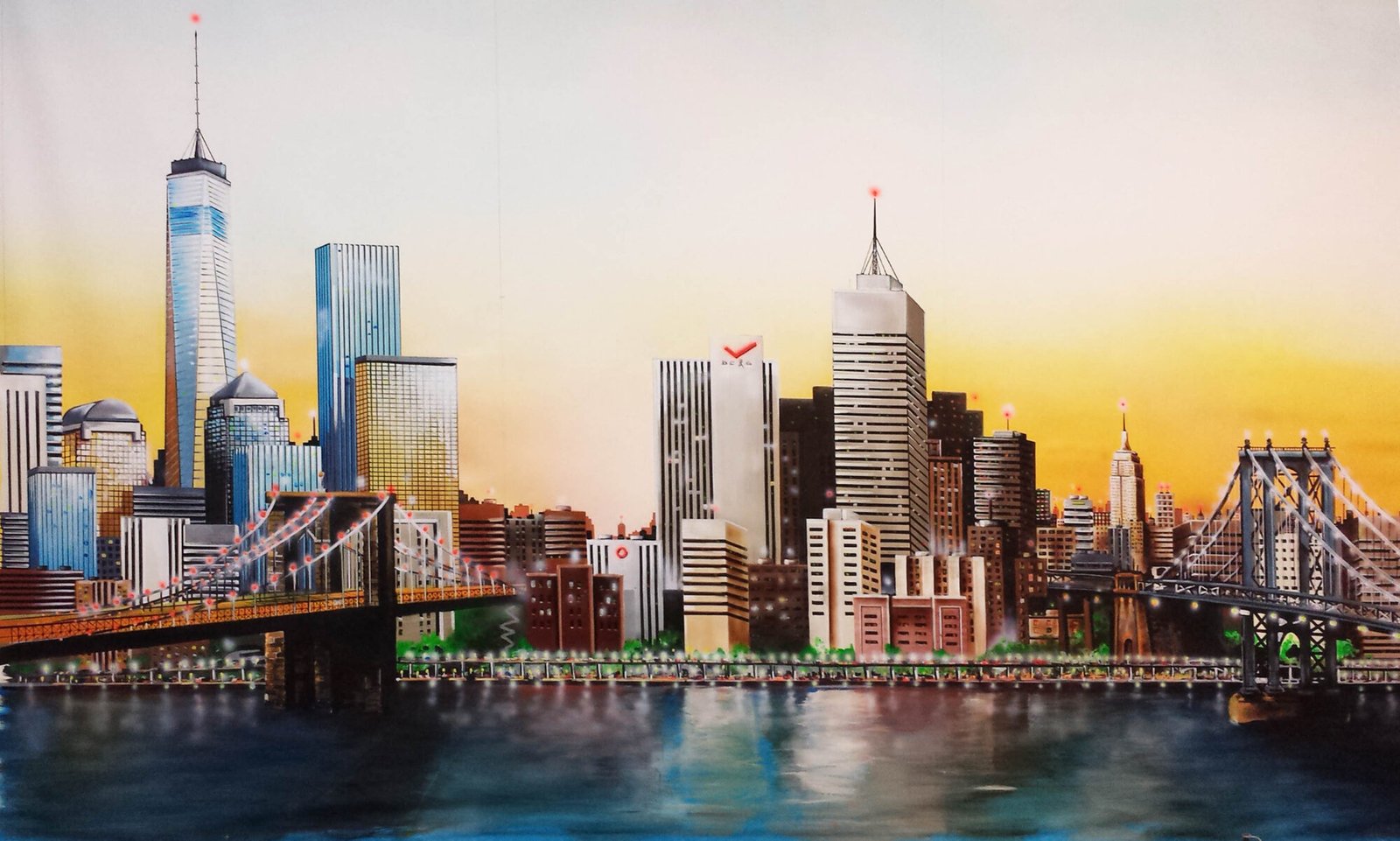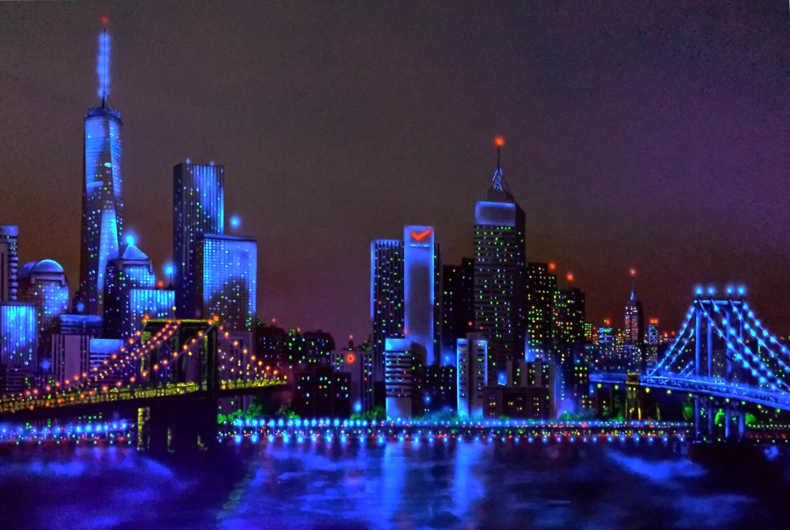Peinture acrylique et fluo offrant une vue de jour et une vue de nuit.