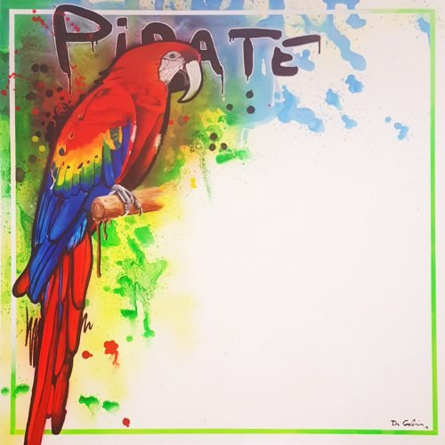 Details & Info PIRATE Toile 100x100cm. Peinture sur toile, acrylique fluo et peinture invisible offrant une vue de jour et une vue de nuit. Category — Les Fluos,Toiles