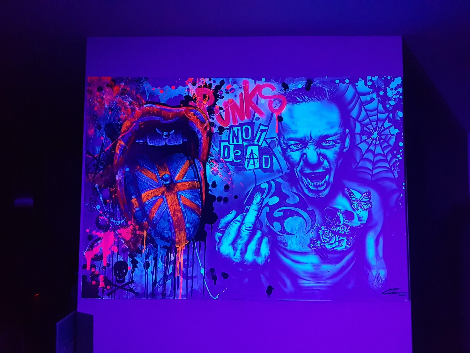 Details & Info PUNK Toile 116x81cm. Peinture sur toile, acrylique fluo et peinture invisible offrant une vue de jour et une vue de nuit. Category — Les Fluos,Toiles